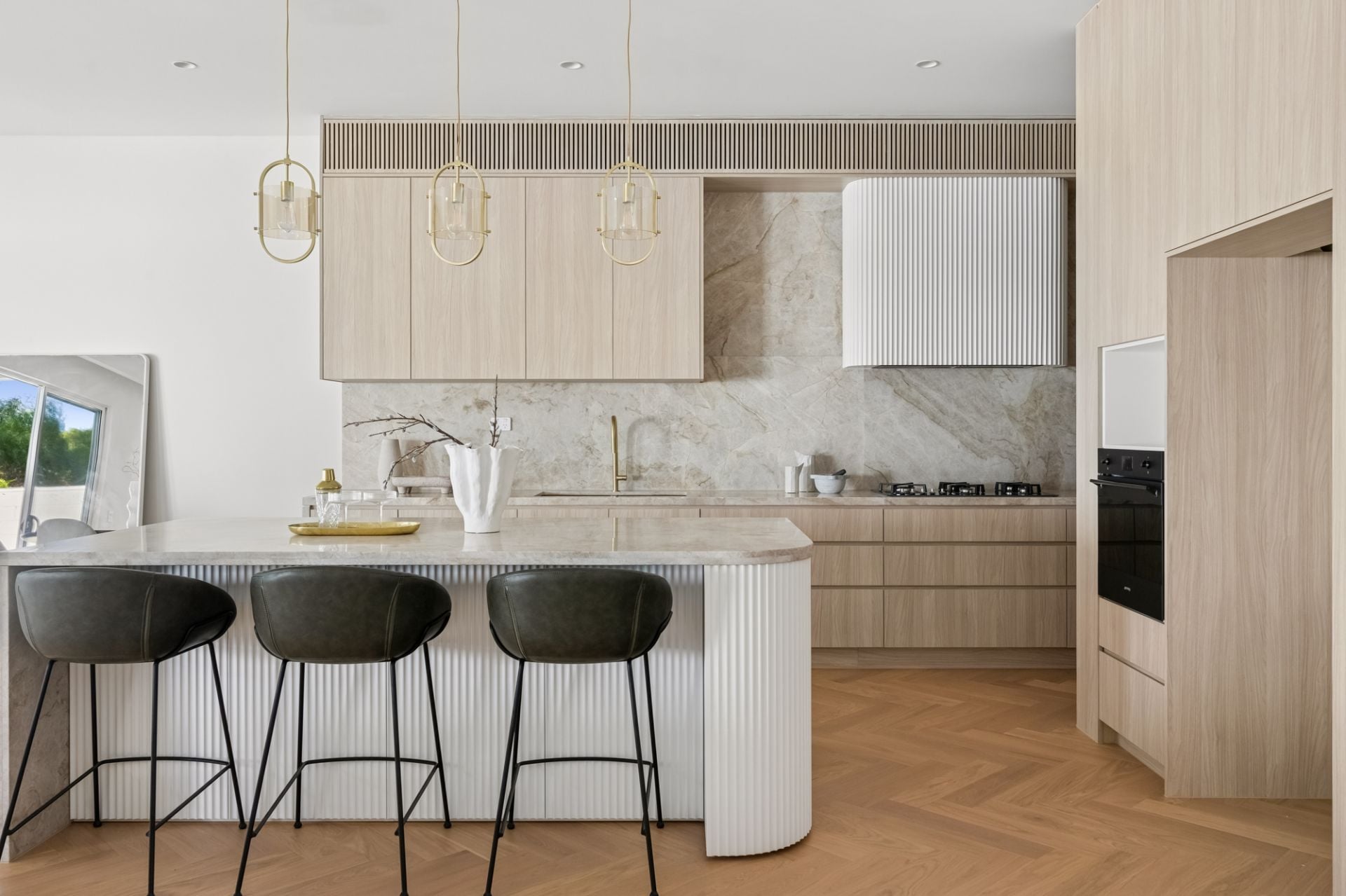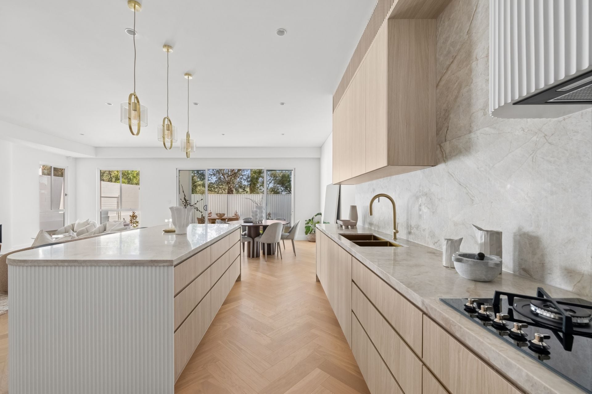 Opening to an impressive entry hall with soaring ceilings and flexible space for a home office, the lower level forms a superb entertaining domain. A wide open-plan living and dining area flows to the BBQ terrace and yard, anchored by a deluxe gas kitchen with stunning marble benches, integrated Smeg appliances and pantry. The upper level presents a light-filled 2nd living area and a north-facing master retreat with balcony, walk-through robes, and elegant ensuite, alongside 3 further bedrooms and a stylish family bathroom. With ducted air conditioning, quality finishes, and a relaxed contemporary ambience, this outstanding home effortlessly delivers modern coastal family living in a premium setting.