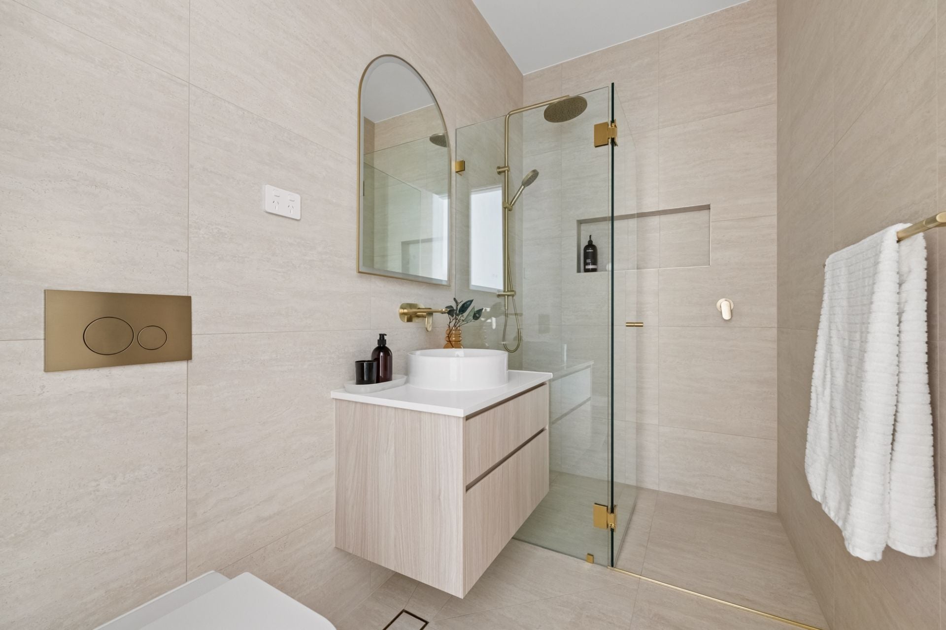 Radiant and luxurious, this brand-new 2-level, 5-bedroom duplex is an impeccable family residence in a prized coastal enclave, with expansive interiors, striking street presence, and a sophisticated sense of style. Presenting beautifully to the street, it features a stylish architectural aesthetic and flowing floorplan, positioned in a family-friendly pocket minutes to beaches, sports fields, and shopping, complete with internal-access LUG, additional off-street parking, and a sun-washed rear terrace and lawn.