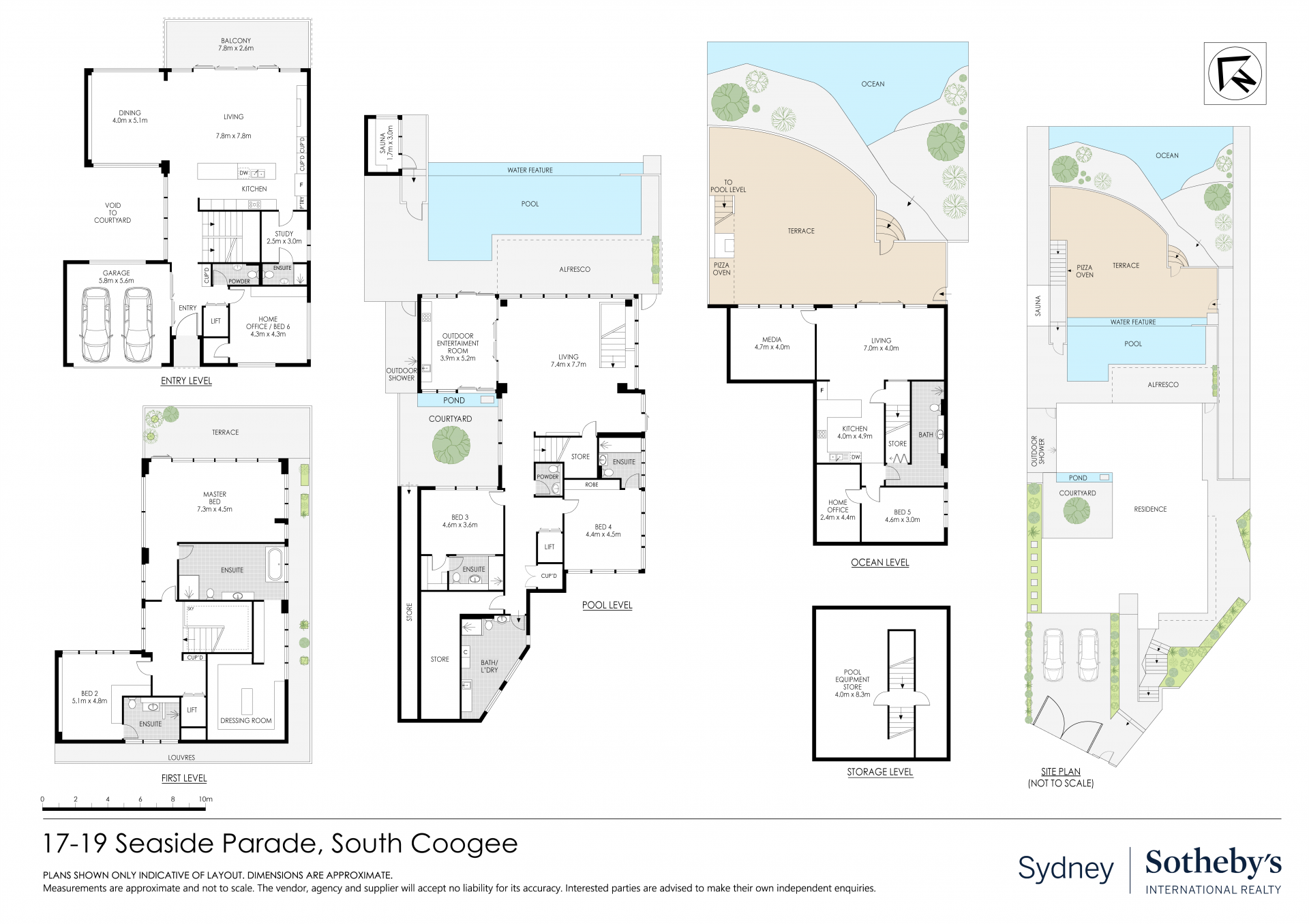 Custom built to celebrate the beauty of its setting while offering every conceivable luxury, this absolute oceanfront masterpiece is immersed in awe-inspiring 180-degree views with a 15.6m frontage to one of the world's most celebrated vistas. With front row seats to the ever-changing ocean spectacle, the four-story home stands as a striking testament to contemporary coastal design that's designed to not only capture the allure of its incredible location but to actively engage and respond to its oceanfront setting. Epic in scale and set on an extraordinary double block, the magnificent residence is wrapped in a series of terraces with a fluid relationship between line, volume and horizon affording the sensation of floating above the ocean. The theatre of the home is achieved through walls of glass maximising the impact of the jaw-dropping vista while a robust concrete and steel build has been designed to endure in the landscape. Designed around a dramatic internal courtyard, the six-bedroom home's exceptional layout features over 700sqm of internal space with multiple living areas, a self-contained apartment ideal for inter-generational living and everything a family could wish for including an infinity edge pool, sauna, outdoor kitchen and lift access to all levels.