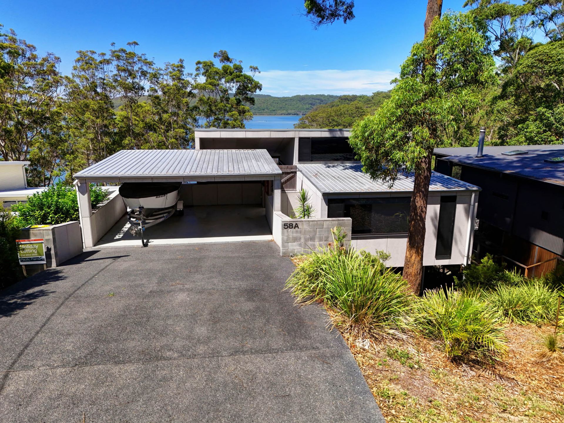 Modern and stylish affording superb views of Smiths Lake and beyond to Sandbar (Cellito) and Seal Rocks.