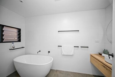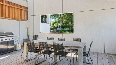 - Instantly impressing via a vast hardwood deck that connects to the contemporary open plan living displaying custom stacking doors, timber floors and a large, north facing highlight window